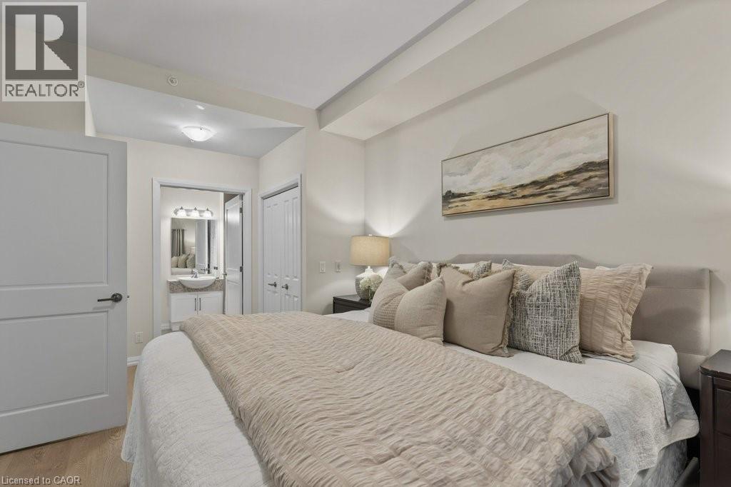 $424 MonthlyShows like a model home! Ground level and wheelchair accessible! This spacious and bright unit offers 2 beds, 2 full baths, in-suite laundry, a storage locker right across the hall, plus a parking spot a short walk from your patio! Large windows showcase the private landscaped rear yard views from every room. Enjoy the private and quiet rear patio. Modern finishes include all granite counters, vinyl and ceramic floors, white shaker cabinetry, stainless appliances, and a large kitchen island. Enjoy this lifestyle with premium amenities shared with #776 including a party room, bike storage, lounge/library, games room with pool table, and a theatre room – all available free of charge to residents. Highly desirable location walking distance to top-rated schools, public transport to University of Waterloo and Wilfrid Laurier University, Conservation Area, parks, hiking trails, restaurants, shopping plazas. This is a super quiet and well sound-proofed unit. A special unit for a special buyer. (id:48040)